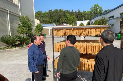 在湖北圆通生物工程有限公司,李军处长、罗兴武副处长带领专家团队进入生产车间,进行深入调研。在全面了解了整个生产流程后,史伯安教授为企业提出果胶提取、存贮和再利用等一系列的生产工艺改进方案,有效解决了企业目前存在的技术难题。