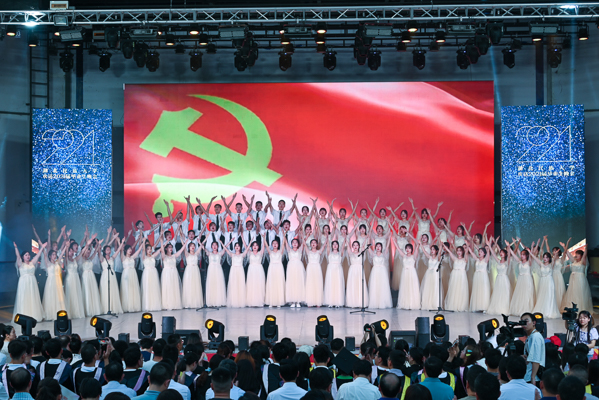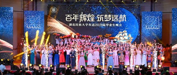 欢送毕业生晚会以“百年辉煌,筑梦远航”为主题,以“红船映初心”“百年恰风华”“共筑中国梦”“奋斗正当时”4个篇章为主线展开。(责任编辑 李秀丽)