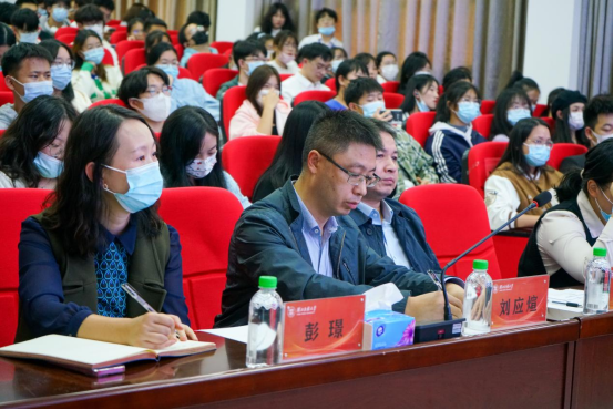 在文史、艺体类答辩会中,校团委书记吴珊、医学部党委副书记黄晓波、数学与统计学院党总支副书记易金桥、智能科学与工程学院党委副书记汪涛、化学与环境工程学院党总支副书记刘应煊、生物与食品工程学院党总支副书记彭璟、林学园艺学院党总支副书记赖申昊出席本次答辩会并担任专业评审,部分学生代表担任大众评审,共有20名学生参加本次答辩会。