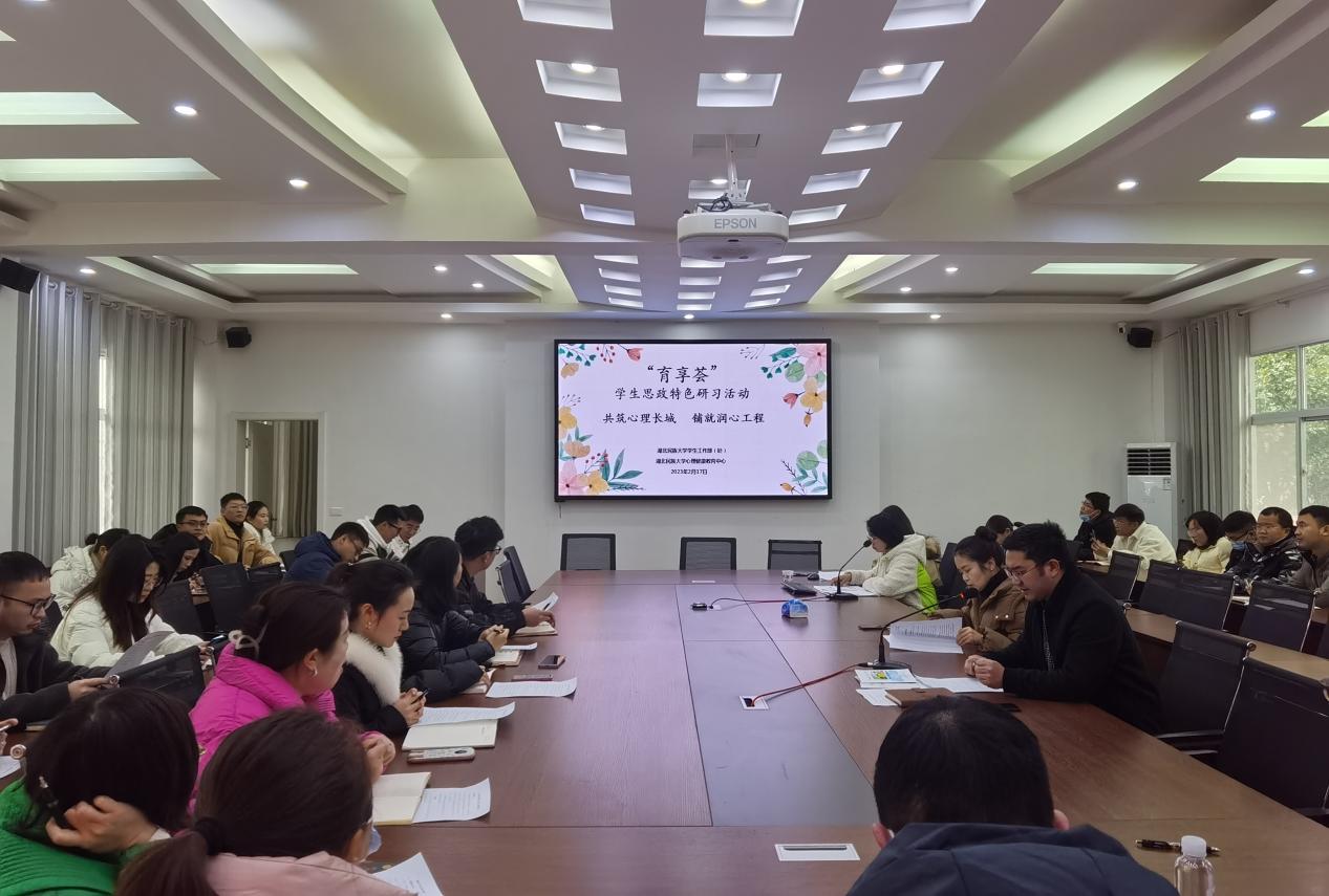 2月17日,由学生工作部(处)主办的第四期“育享荟”学生思政特色研习活动在学工处会议室举行。本期研习活动以“共筑心理长城 铺就润心工程”为主题,全体辅导员参加了研习活动。学生工作部(处)副处长徐杰主持会议。