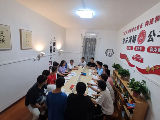 习近平总书记指出,要深入挖掘和阐发中华优秀传统文化讲仁爱、重民本、守诚信、崇正义、尚和合、求大同的时代价值。“尚和合”是在正视事物之间差异和矛盾的基础上,尊重差异、协调矛盾。强调在存异求同,化异为同,使诸多不稳定因素在对立转化中最大限度地化解乃至消弭。学院功能型党小组在“一站式”社区倡导“和合求同”的价值理念,探寻底层逻辑,激发朋辈力量,深耕置换产生问题和矛盾的土壤。通过完善社区文化墙、活动室、调解室的阵地建设,营造出“团结、友爱、和谐、互助”的文化氛围;组织学生在调解室观看体现“和”文化的动画、视频和制作宣传展板,对于解决矛盾、化解纠纷、推动利他、促进和谐具有重要意义。在推动“文化育人”的具体工作中,学院特别注重“第一学期”“第二课堂”“第三空间”,在课内课外、线上线下探索“和合共进”的新型师生关系。例如,策划“心向阳光,你我同行”实践创新周、“德法杯”师生友谊赛、书记下午茶等活动。截至目前,连续三年举办相关联谊活动,师生参与度高、认同度高,为实现“明德慎罚、息诉无讼”“美人之美、美美与共”的学生社区氛围提供强有力的人文支撑。