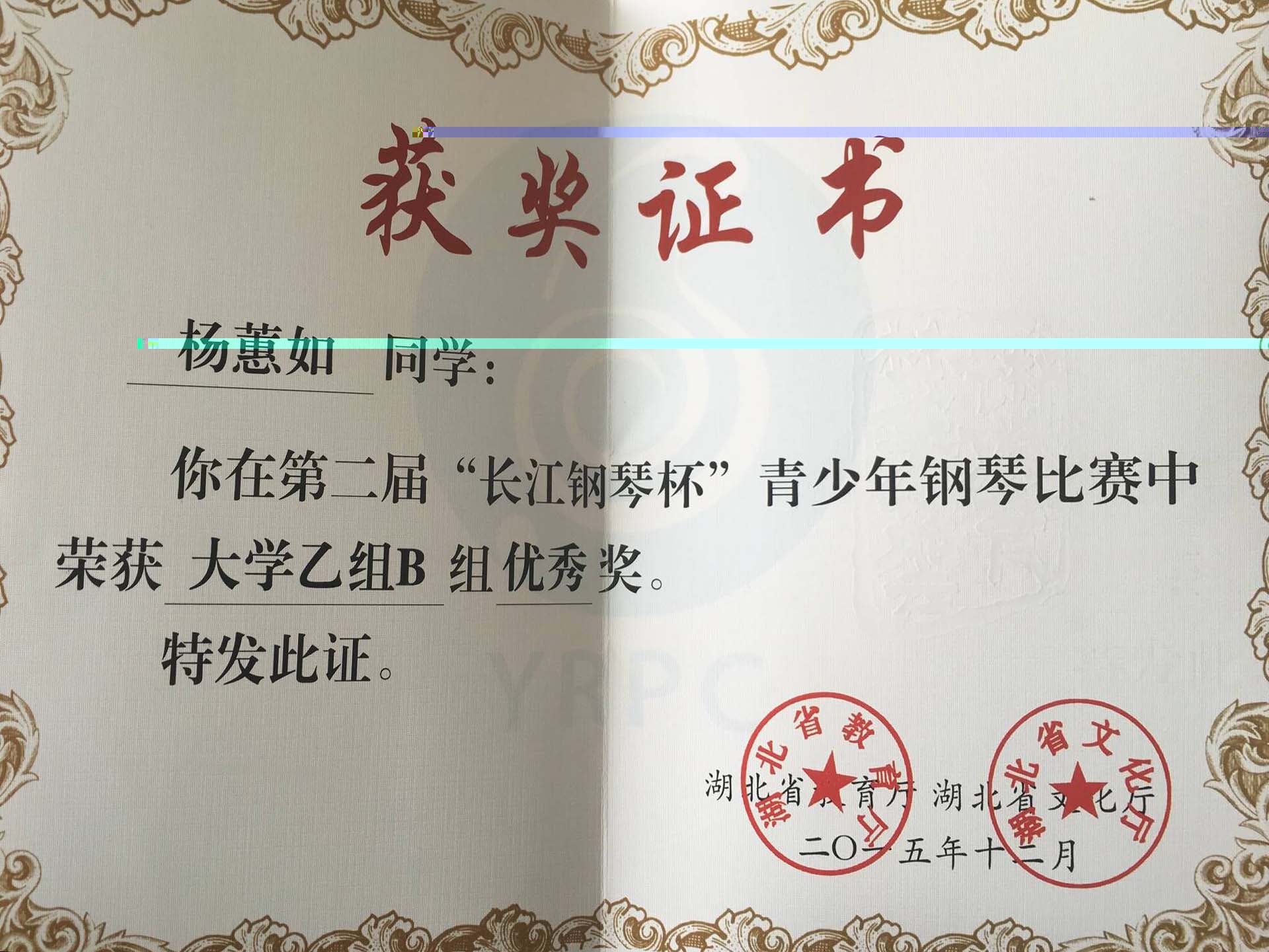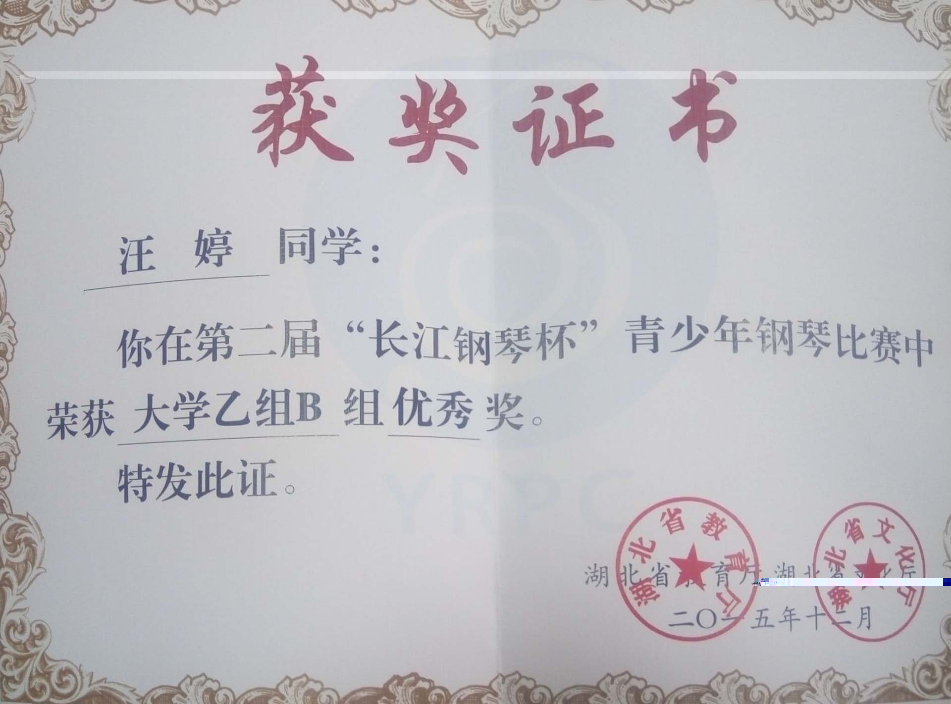 艺术学院学生在湖北省教育厅、湖北省文化厅举办的第二届“长江钢琴杯”青少年钢琴比赛获得多项奖项。