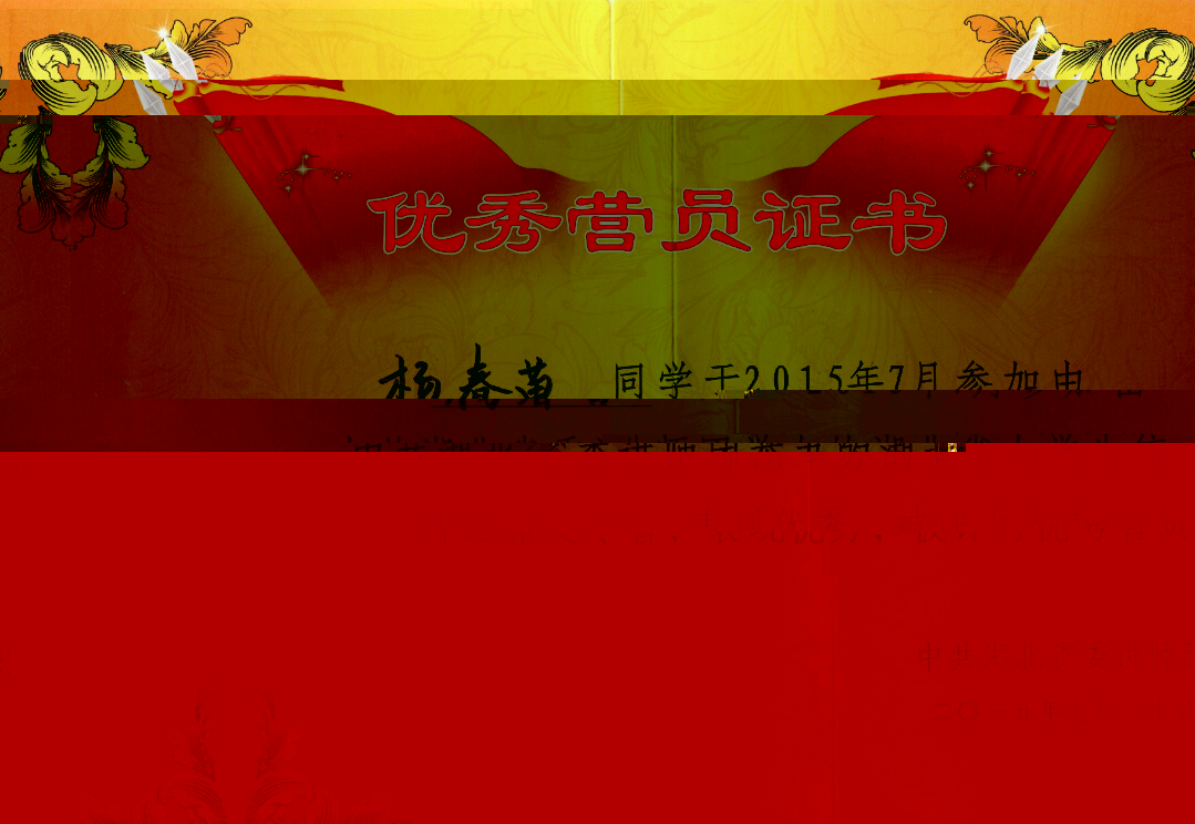马克思主义学院学生朱建华、杨春苗于2015年7月参加由中共湖北省委讲师团举办的湖北省大学生信仰之旅夏令营,表现优秀,被评为“优秀营员”。