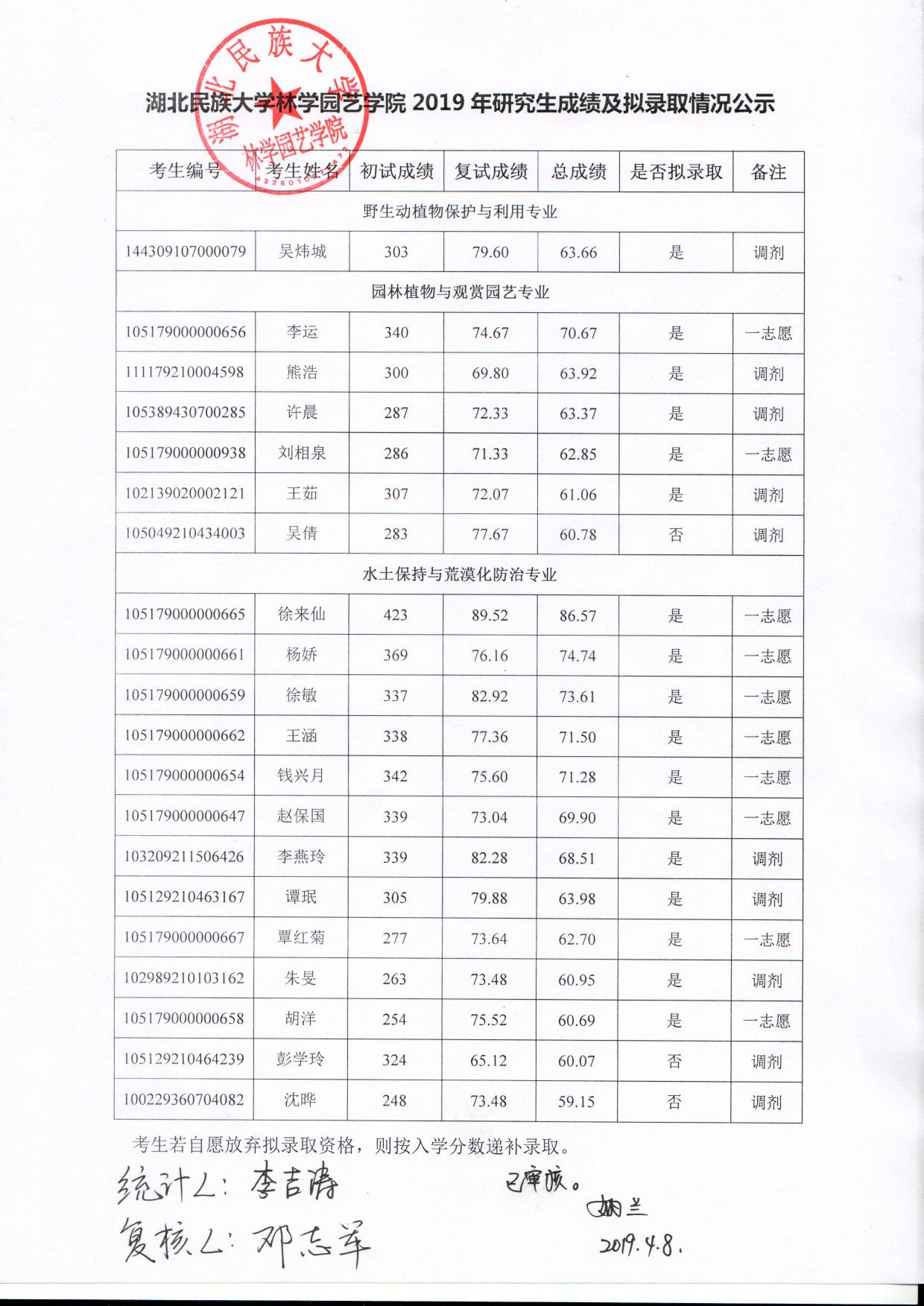 365电子娱乐官方网站林学园艺学院2019年研究生成绩及拟录取情况公示