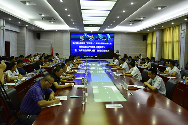 本网讯(通讯员 易金桥)7月6日,第六届中国国际“互联网+”大学生创新创业大赛365电子娱乐官方网站初赛“青年红色筑梦之旅”活动启动仪式在行政楼三号会议室举行。校领导顿祖义、邓磊出席,相关职能部门负责人,学院(部)负责人、分管双创工作领导、负责双创工作教师,部分学生代表参加了活动启动仪式。本次活动启动仪式通过网络直播同步进行,共有3000多名师生全程在线参与。校团委书记方云霞主持启动仪式。