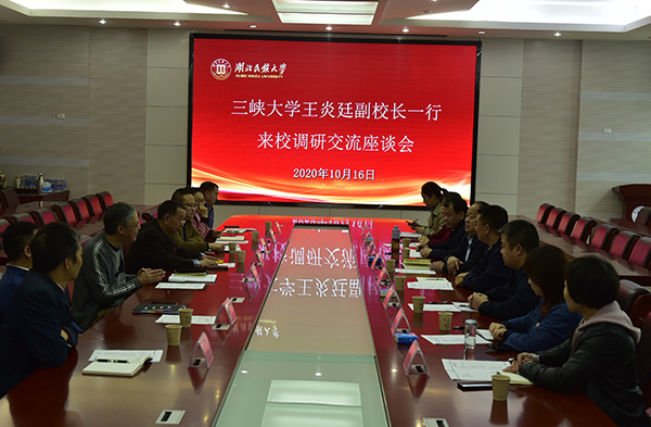 本网讯 10月16日,三峡大学党委常委、副校长王炎廷一行来我校考察交流后勤管理改革和服务保障工作。学校副校长秦群燕及相关职能部门负责人参加交流座谈。