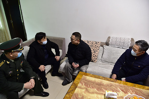 本网讯 2月9日,州委常委、常务副州长丁辉,恩施军分区司令员龚鸿斌到我校慰问退休教师家属袁刚。我校党委副书记、校长顿祖义,党委常委、副校长祝建波陪同。