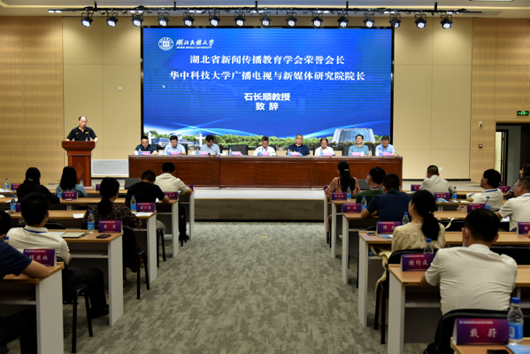 湖北省新闻传播教育学会会长、武汉大学新闻与传播学院院长强月新教授,湖北省新闻传播教育学会名誉会长、华中科技大学广播电视与新媒体研究院院长石长顺教授分别为会议开幕致辞。
