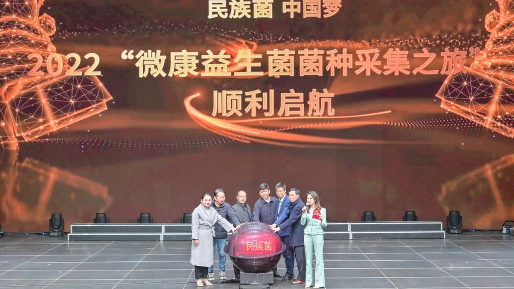 在微康益生菌采样启动仪式上,州农业农村局副局长赵映年、恩施州广播电视台高级记者田冰、微康益生菌(苏州)股份有限公司市场部总监方端以及我校生物科学与技术学院党总支书记邓顺松和副院长万佐玺、华中农业大学食品科学技术学院党委副书记向异之共同点亮启动球。