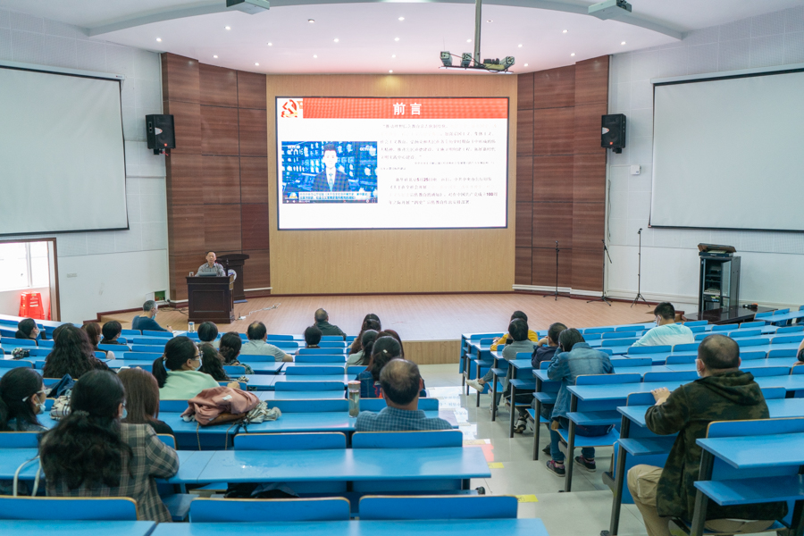 4月28日,外国语学院在学院学术报告厅举办“四史学习”活动,邀请学校宣讲团成员、马克思主义学院副教授周传和宣讲改革开放史。外国语学院全体教职工参加活动,该院党总支书记严森担任主持活动。