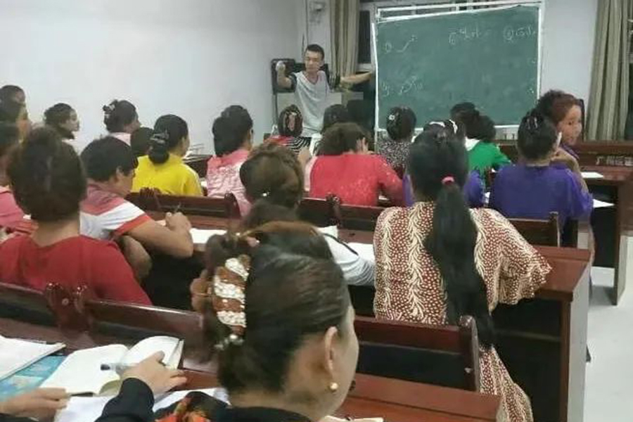 帕尔哈提·穆沙在农民夜校教国家通用语言文字