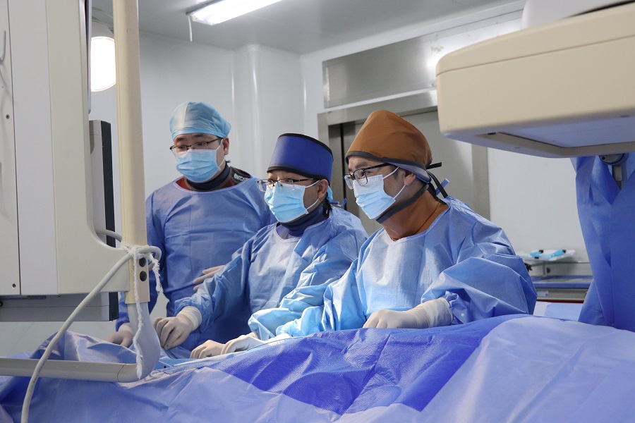 医院神经内科医生们正在为患者开展脑血管介入手术