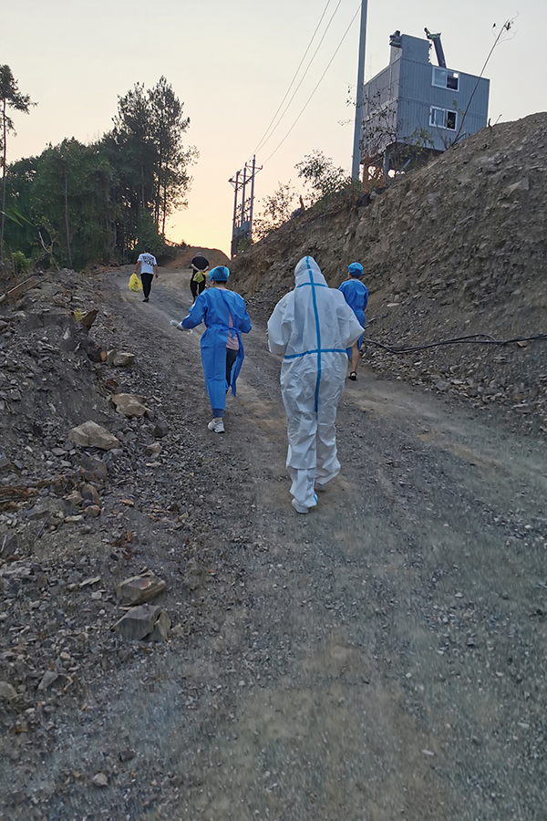 民大志愿者跋涉到居住偏远的居民家中采样