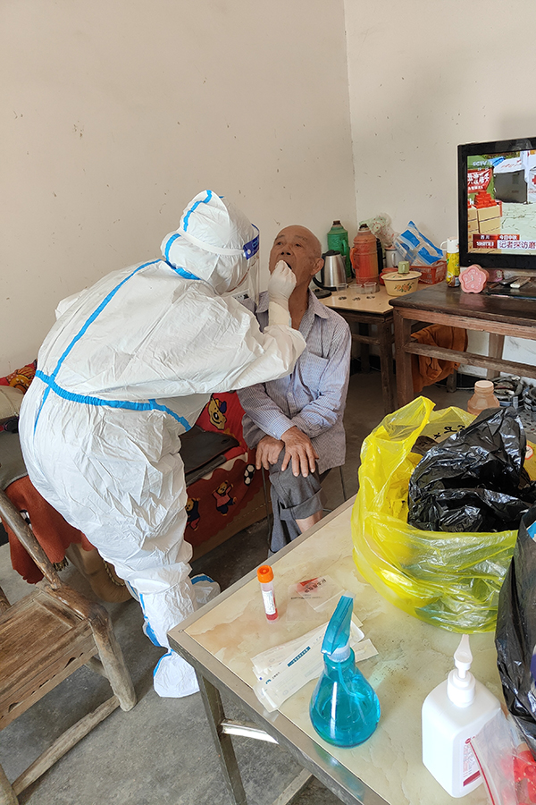 民大志愿者在大龙潭村进行核酸采样