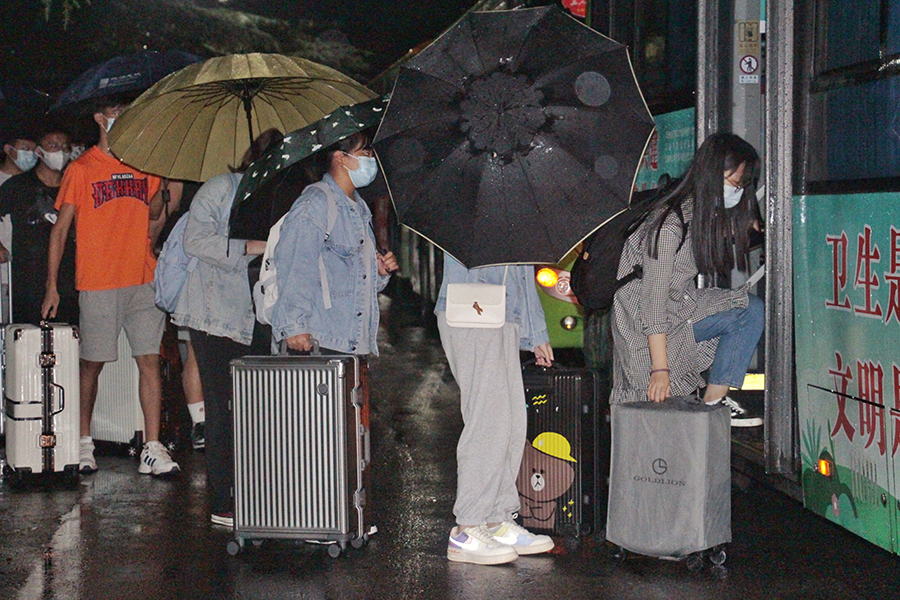 9月20日晚,淅淅沥沥的小雨带来一阵秋意,在医学部教学楼门口,7位带队教师与200名医学部学生组成的第五批增援恩施市社区核酸检测采样志愿者队伍登上大巴,从学校出发。截至目前,学校共派出5个批次,共计1689名师生增援恩施市抗疫第一线。