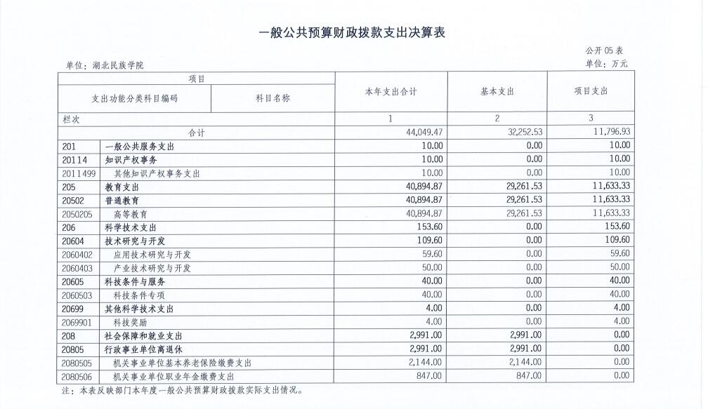 2.高等教育(2050205): 反映的是经国家批准设立的央和省、自治区、直辖市各部门所属的全日制普通高等院校(包括研究生)的支出。