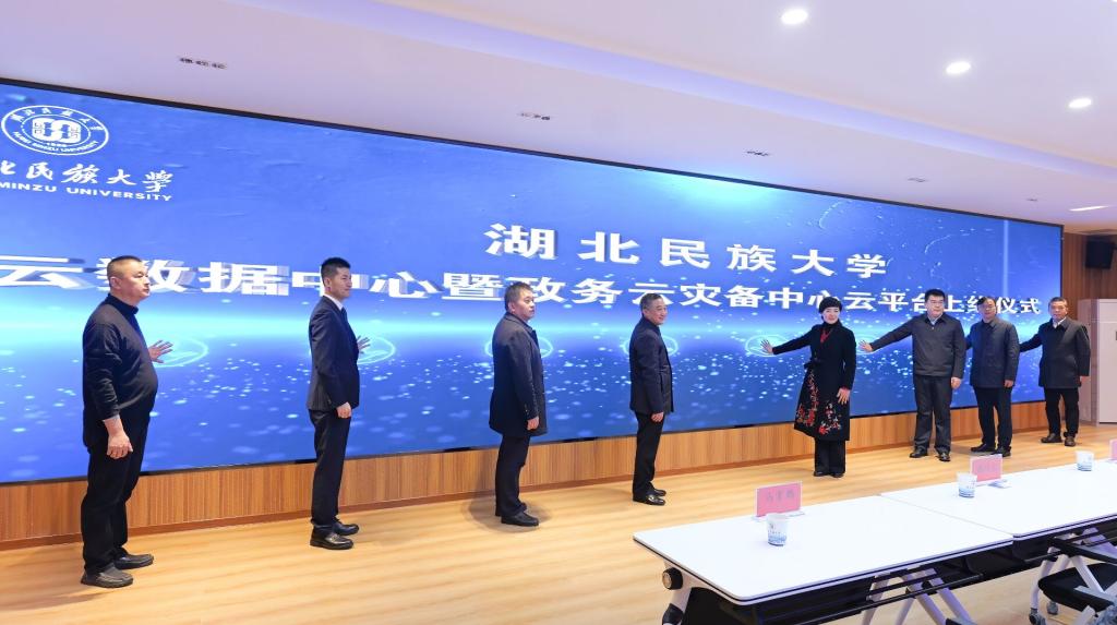 1月16日上午,365电子娱乐官方网站云数据中心暨政务云灾备中心上线仪式隆重举行。学校校长顿祖义与恩施州委常委、宣传部部长向红林,恩施州人民政府副州长马霄鹏,卓智集团总裁张恒出席仪式,为云数据中心揭牌,并与云数据中心暨政务云灾备中心合作单位负责人共同启动平台上线。学校党委常委、副校长刘志军主持上线仪式。