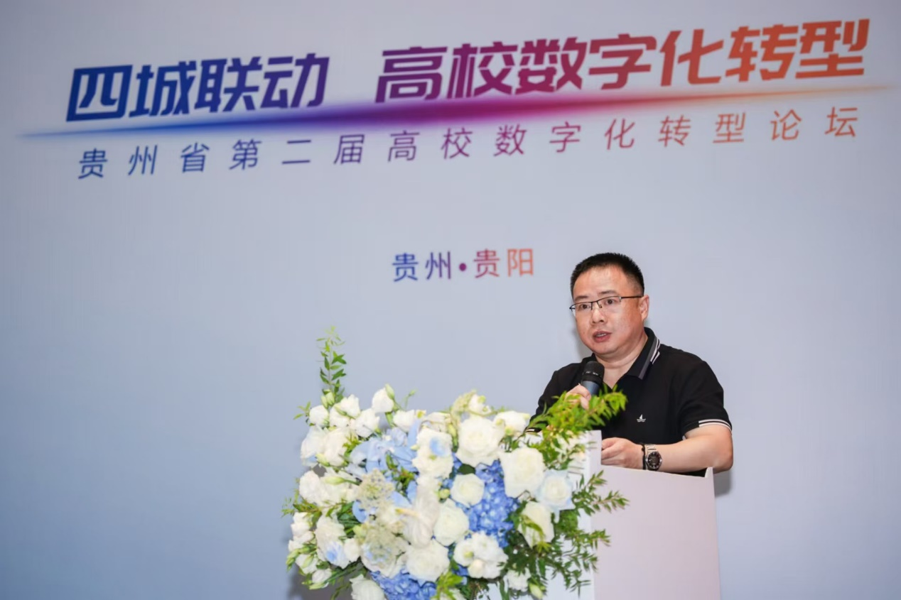 5月25日,贵州省第二届高校数字化转型论坛在贵阳万丽酒店顺利举行,我校受邀参加论坛。此次论坛由贵安新区管理委员会指导,贵州省计算机学会主办,并得到多方单位的大力支持。论坛聚焦教育数字化转型,旨在推进产业、教育、科技、人才的“四位一体”协同融合发展,为高等教育内涵式高质量发展注入新动力。贵阳市大数据局副局长徐先文出席会议,高校数字校园相关领域专家、管理部门领导、数字校园相关企业负责人及高级顾问参加会议。