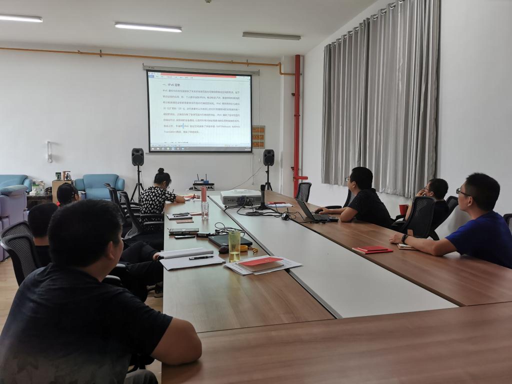 第五项为业务学习,由朱晨同志讲解“IPv6知识分解之背景介绍及地址分配”,详细介绍了“IPv6”的历史背景、应用前景及地址类别等相关知识。