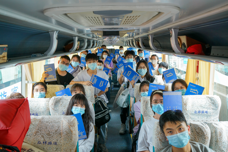 “您好,请问立人3栋怎么走?”“从这里走上去就到了。”“可我还是不知道怎么去。”看着怯生生、面露难色的新生,身着红色马甲的志愿者立即接过行李,“别害怕,我们安排车送你去。”迎新志愿者坚守在不同的站点,帮助新生将行李搬运至迎新车辆上并耐心解答新生疑问,全方位开展志愿服务。寝室楼栋,宿管阿姨亲切和蔼地将提前拟好的信息登记表递给新生填写,并分发寝室钥匙。各院报到点前贴着醒目的红色横幅,迎接新生的到来。大学生广场上,学校为家庭经济困难学生开设“绿色通道”。学生工作处、财务缴费咨询等相关单位搭建迎新帐篷,等待新生报到、购置军训服,为新生解疑答惑。校园超市在新生相对集中的宿舍楼设有现场购买服务点,方便新生购买生活必需品,并为购买量大的新生送货上门。