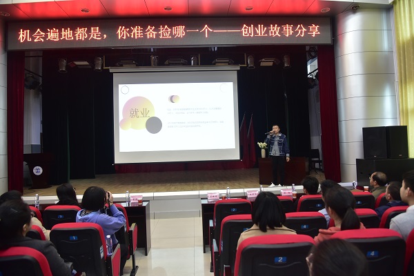 颁奖典礼结束后,陈砺志向参加典礼的300多名同学进行了主题为“机会遍地都是,你准备捡哪一个”的创业故事分享。他以当代就业与创业的具体事例为切入点,结合大数据分析,为同学们在就业创业方面提出了指导性建议。他通过讲述哇呜映画海报设计的抓住机遇谋发展、恩施斗白酒令创意发展等9个创业故事,指导同学们如何去寻找机会、抓住机遇,号召同学们苦修专业知识,积极参加社会实践,大胆创新,勇于开拓,闯出一条属于自己的创新创业之路。