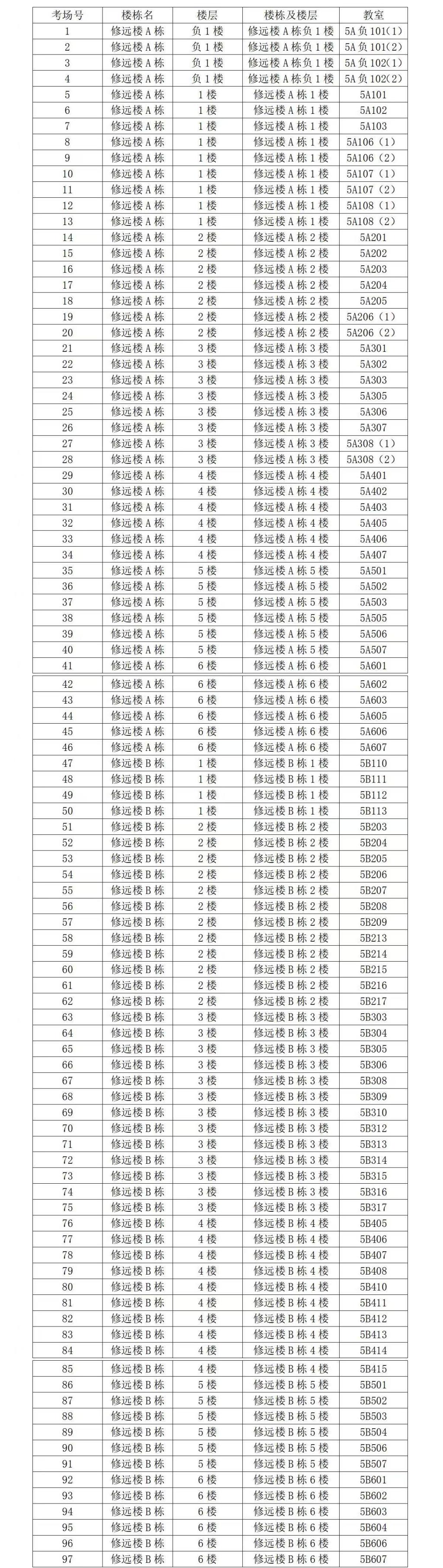 365电子娱乐官方网站桂花园校区考场和教室对应分布安排表