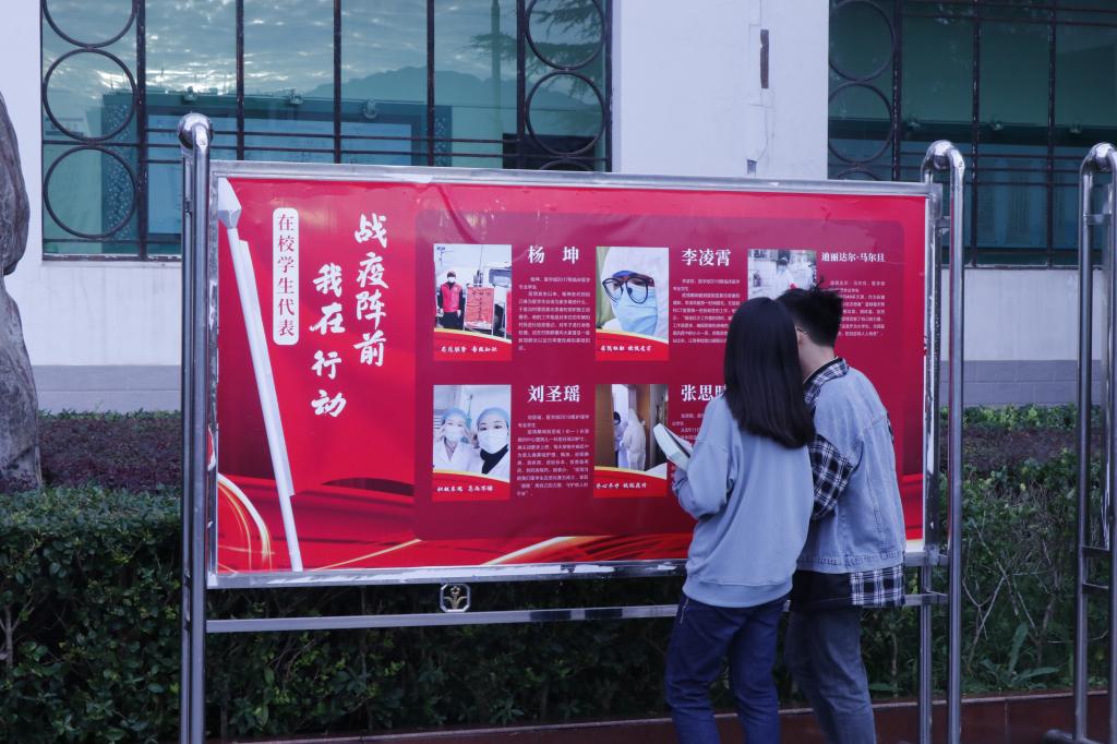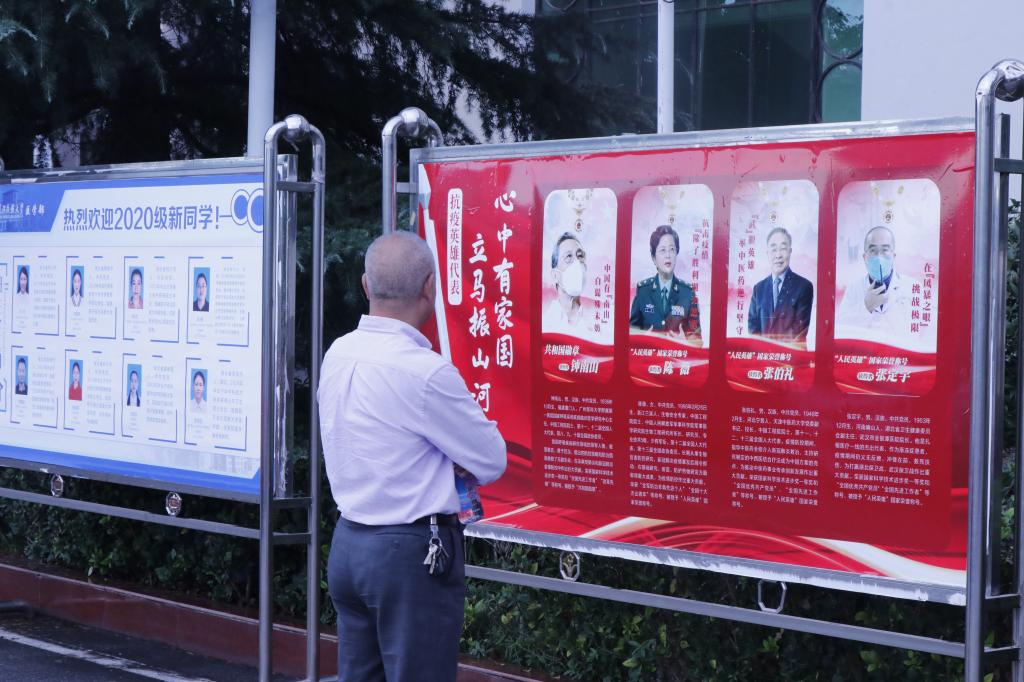 本网讯(记者 金成奇 张健 刘思 摄影 兰延安 龙忠江)为响应习近平总书记号召,大力弘扬生命至上、举国同心、舍生忘死、尊重科学、命运与共的伟大抗疫精神,9月17日起,我部开展宣传抗疫事迹,弘扬抗疫精神活动,在医学部门口设立抗疫典型宣传展板供全校师生观看。