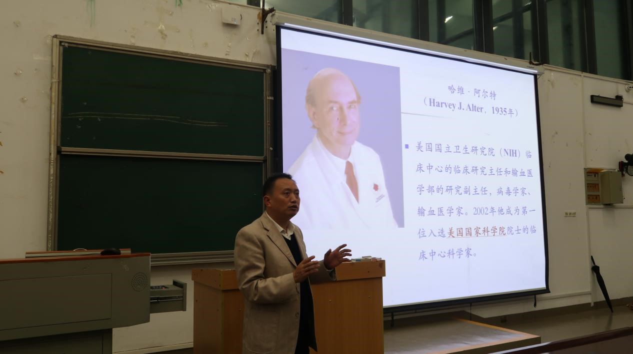 本网讯(通讯员 方珊、余铮术)10月15日晚19:00,由研究生处主办、医学部承办的学术讲座《从丙肝病毒到新冠病毒——对病毒研究的再认识》——2020年诺贝尔生理学或医学奖解读会在5B508教室顺利举行。此次讲座由我校学科建设及学位管理办公室副主任罗洪斌教授主讲,医学部、化环学院、数统学院全体研究生和部分本科生到场聆听。罗教授从2020年诺贝尔生理学或医学奖获奖内容解读开始,对人类致病病毒研究及当前新冠肺炎疫情防控进行再学习再认识,并展开开放式讨论。