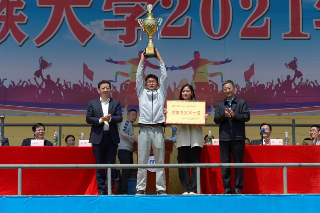 本网讯(通讯员 许旖蕾/文 李东 付傲/摄)4月29日,我校2021年春季运动会闭幕式在五环体育场举行。学校党委书记吴建清,党委副书记、校长顿祖义,党委副书记、副校长汪兴平,党委常委、副校长邓磊,党委常委、副校长祝建波,党委常委、总会计师余来,党委常委田景福,各二级学院党政负责人、部门职能负责人出席闭幕式。闭幕式由邓磊主持。