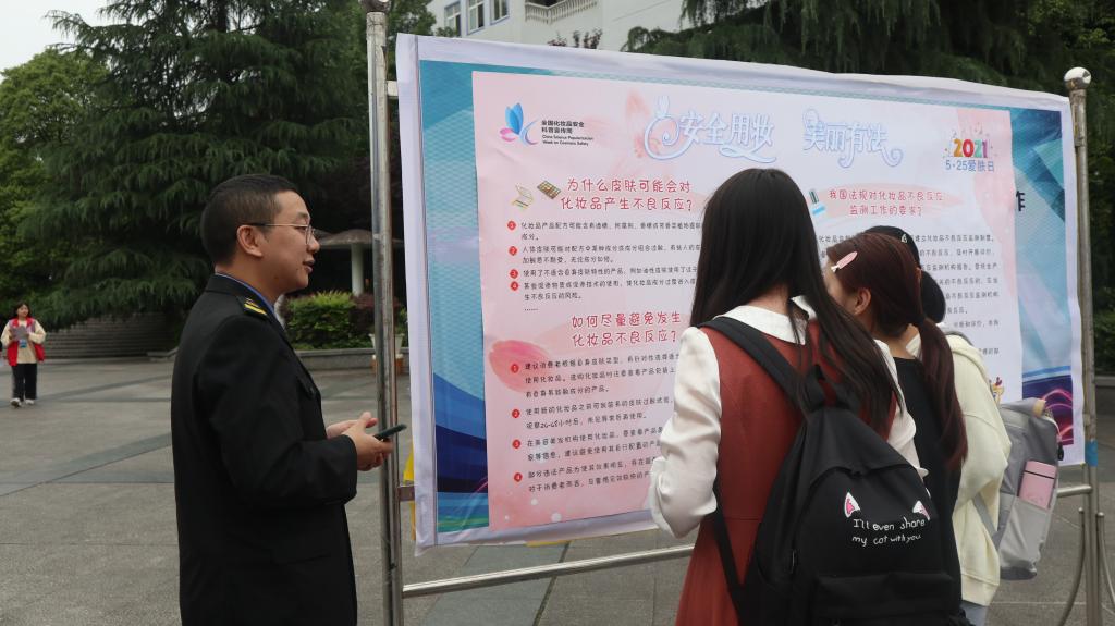 本网讯(记者 时若兰/文 付傲 龙忠江 兰苑源/摄)5月25日,恩施州市场监督管理局联合省药监局恩施分局、恩施市市场监管局、365电子娱乐官方网站医学部共同开展了“5·25爱肤日”化妆品安全科普校园行活动。活动在365电子娱乐官方网站大学生广场举办。