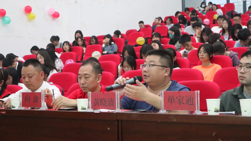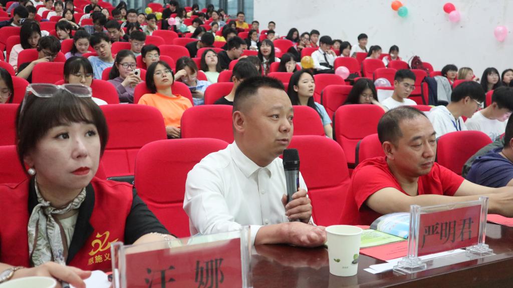 比赛最后,黄晓波对本次大赛做了总结。他首先表示了对各位评委们的感谢以及本次活动的肯定。然后他将“志愿”一词拆解之后做出解释,提出志愿活动的本质是爱,并希望所有团队成员及全体学生以爱之名,不忘初心,践行使命。
