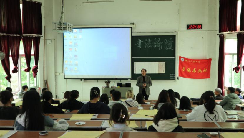 余中权老师首先强调了书法在中华民族传统文化中的重要性,并指出书法是中华民族的骄傲。当谈及自己对书法的体会时,他希望同学们学习书法不要有畏难情绪,要持之以恒。培训中,余老师从书法的概念展开讲述了书法从古到今的变化过程,他表示书法的变化是循序渐进的,这种变化是必然的也是必要的。通过展示部分优秀书法作品,余老师详细阐释了软笔书法在执笔和运笔上的技巧,强调执笔的关键是学会用腕,并具体介绍了着腕法、枕腕法、提腕法、悬腕法四种用腕方法。此外,余老师从起笔、行笔、收笔三个方面讲述了运笔方法并教授同学们自己摸索出的独特起笔技巧。最后,余老师对参加培训的同学表示感谢,培训活动在同学们的掌声中圆满结束。