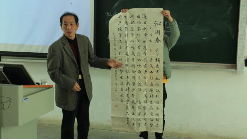 本网讯(记者 杜泽鹏/文 许旖蕾/摄)为提高书画社会员软笔书法技能,弘扬中华民族传统文化,10月21日,由墨缘书画社开展的“提高书画技能,弘扬中华文化”软笔书法培训活动于医学部8306教室举行。湖北省书法家协会会员余中权、崔在辉以及徐国权、田祚国老师应邀出席本次活动,余中权老师担任本次活动主讲人,墨缘书画社全体会员参与。