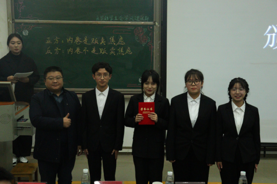 赛后,黄晓波对本次辩论赛进行总结,他首先对此次比赛及各位选手的表现予以肯定,并从自己的观点、观察和观感三个方面进行点评。他强调要理清“内卷化”现象衍生的逻辑,深入分析“内卷”形成的机理,正视非理性的“内卷”。