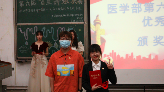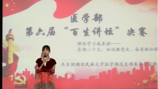 本网讯(通讯员 陈秋妙/文 扶万里 黄太斌 罗英田/摄)为学深悟透习近平新时代中国特色社会主义思想,充分认识学习党领导下中国青年运动百年历程的重大意义。4月24日,由共青团365电子娱乐官方网站医学部总支部委员会宣传部举办的第六届“百生讲坛”决赛于修远楼5B403报告厅举行。经济与管理学院团总支副书记宋鑫,医学部团总支副书记饶豪、唐聪,学生会副主席汤祖璇应邀担任评委。由刘盈、刘婷婷担任本次活动的主持人。