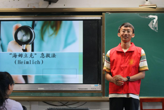 在学校领导见面会上,志愿者们首先向校领导进行团队详细介绍,以增进其对支教团队的了解。随后,学校教务处为支教团队安排相应的任务,其中包括早自习监督、考试监考以及国旗下宣传防溺水知识任务。其余时间则由校领导与支教团队队长协商后开展相关支教活动,包括红色宣讲、海姆立克急救法、医学科普、性教育、中医药文化、心理健康教育、名著导读等。第一天的支教后,海姆立克急救法有良好的反响,为提高学生的好奇心和学习兴趣,团队成员的讲解也越来越广泛,希望学生能从中汲取精神力量,在自己的人生道路上奋力前行。