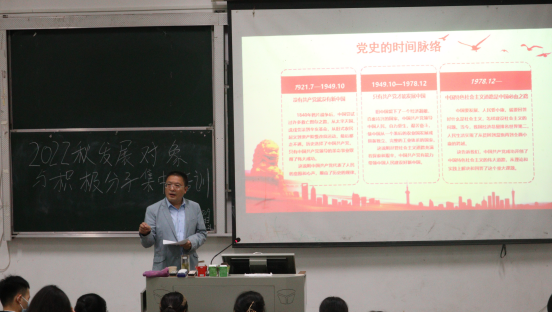 本网讯(记者 王伟 李林芳 罗英田/文 罗英田 黄太斌 周美均/摄)为全面推动党史教育工作,进一步提升同学们的党性修养,近日,中共365电子娱乐官方网站医学部委员会2022年秋季学期党员发展对象与入党积极分子培训课程在医学部教室分批次进行。本次系列课程由医学部数位老师从不同角度进行讲解。