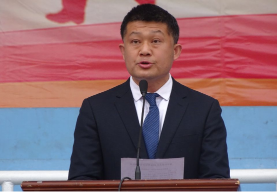 何斌宣布运动会团体总分排名及荣获“体育道德风尚奖”的学院