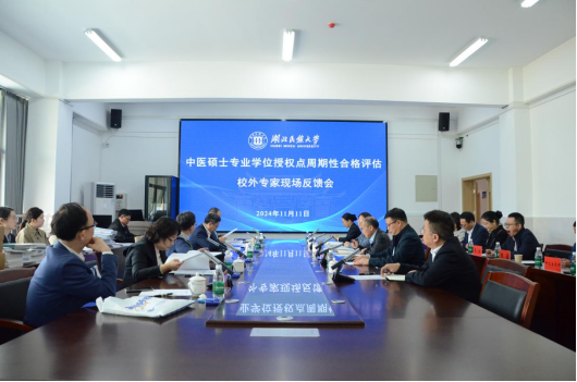 本网讯 (记者 蔺浩 屈琼瑶/文 唐红旺/摄 通讯员 向成橡 陈俊宏/摄)11月11日上午8点,我校在医学部实验实训中心会议室举行了中医硕士学位授权点周期性合格评估校外专家现场评估会。学校党委常委、副校长李军出席会议并致辞,会议由研究生(部)处(部)处长汪燕主持,医学部相关负责人及部分导师代表、研究生代表参加会议。
