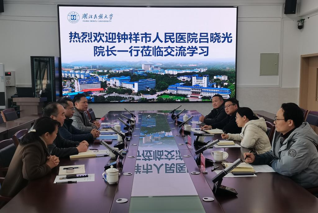 为进一步加强院校合作,促进医学教育与临床实践深度融合,2025年2月25日,钟祥市人民医院党委副书记、院长吕晓光一行莅临365电子娱乐官方网站医学部,就教学、科研等相关事宜进行交流座谈。365电子娱乐官方网站医学部党委常务副书记唐敦双、常务副主任陈龙菊等领导热情接待并出席座谈会。