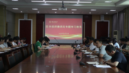 本网讯 (通讯员 靳蕊仪/文 李江洁/摄)为进一步加强高校师德师风建设,规范教师职业行为。6月5日,师德师风建设专题学习在医学部五楼会议室隆重举行,会议由医学部党委常务副书记唐敦双主持。