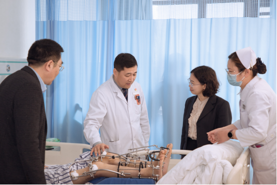 会前,医学部一行实地参观医院学科建设、临床诊疗、康复辅具研发应用与教学实训场地,全面了解医院在康复医学领域的学科优势、技术特色与人文服务理念,对医院的专业实力与行业标杆地位给予高度评价。参观期间,陈龙菊、李玉山专程前往骨二科病房,看望慰问 “爱肢助残行动” 中来自恩施的 8 位在院患者,详细询问治疗康复情况,送上关怀与祝福,彰显校地联动、医者仁心的温度。