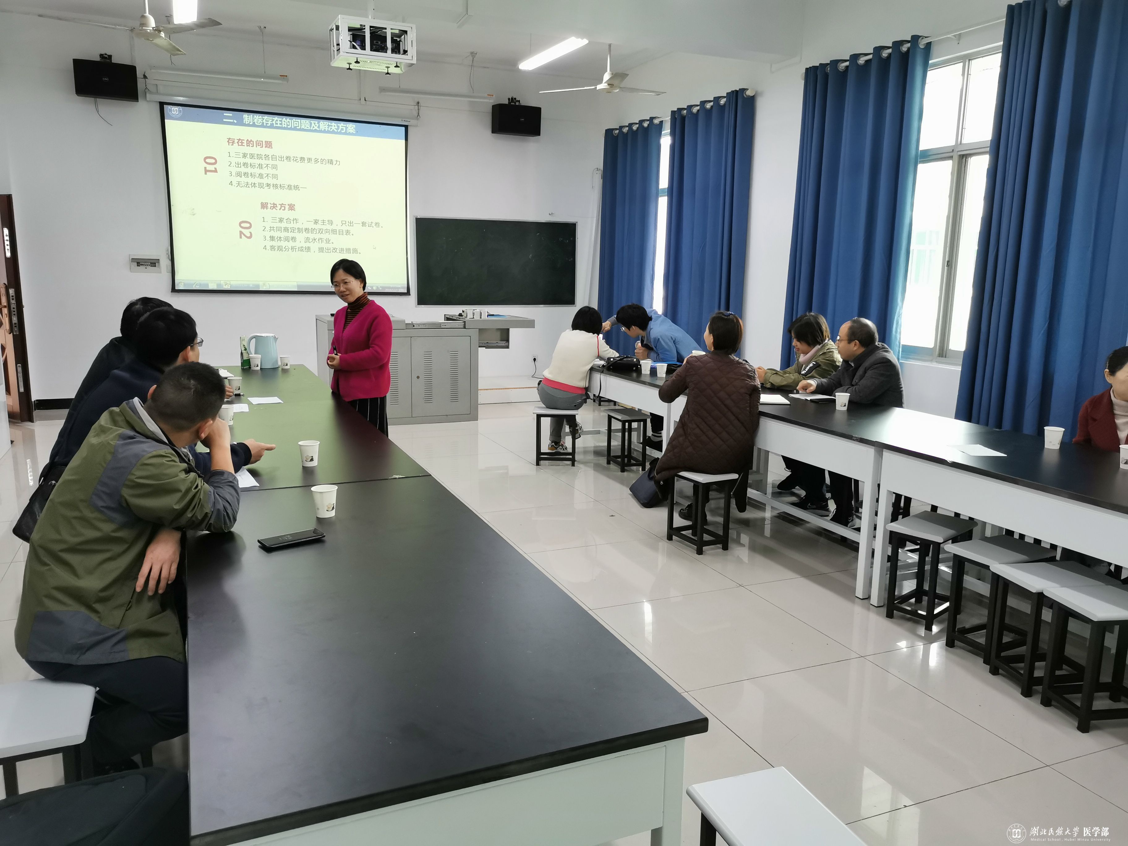 医学部根据教育部临床医学专业认证专家组上个月对我校临床医学专业认证工作的初步意见,积极开展整改工作。于2019年11月16日上午,医学部教学管理办公室召集各临床医学院的内科学、外科学、妇产科学、儿科学教研室的主任、秘书在医学部五楼会议室商讨临床教学同质化问题。会议由医学部分管教学工作的副主任陈龙菊主持。陈主任从教学同质化的含义、目前存在的问题及拟解决方案、组建课程组的理念及方案以及当前需要推进的工作4个方面与参会人员进行了广泛深入地交流。参会人员踊跃发言、深入探讨,并按照会议议程抽签选出了2019-2020学年度内科学、外科学、妇产科学和儿科学课程组的组长所在单位,与会者一致同意课程组组长单位每学年轮转一次。陈主任特别指出了近期需要立即开展的2019年秋季学期组卷工作,要求由相应的课程组组长牵头组织三家临床医学院的相应科室的教学主任及教学秘书,确定本学期考试课程的命题双向细目表、出题、组卷及阅卷方式。会议还讨论了手机考试的相关问题。