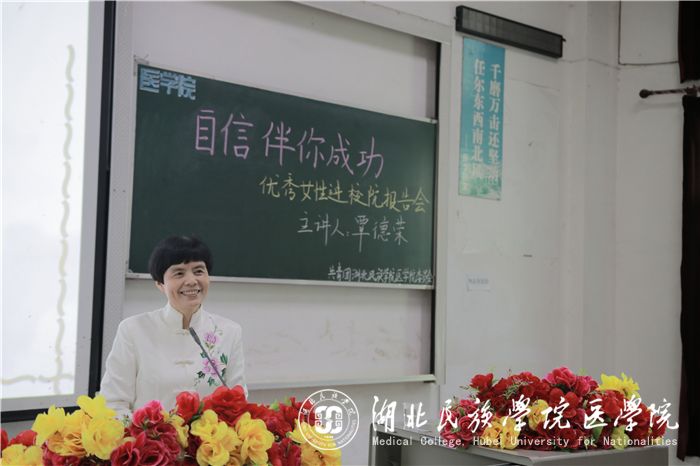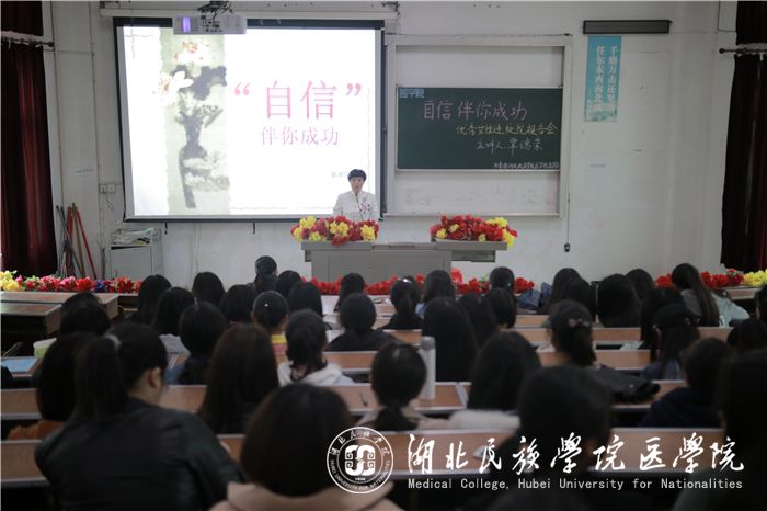 本网讯(通讯员 李晓芳/文 周蕾/摄)自信是成功的第一秘诀。为增强我院女大学生的自信心,3月30日,我院于8305教室举办了“优秀女性进校园”报告会,恩施市中心医院工会主席覃德荣女士应邀担任主讲人。讲座由学生科科长张辉老师主持。
