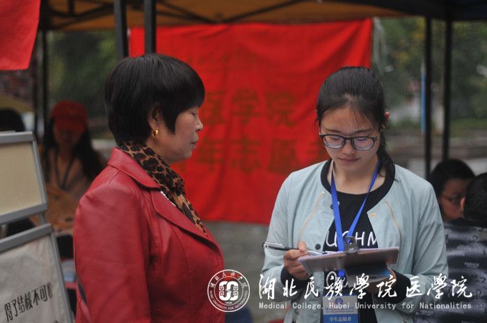 上午10点,余下的志愿者也向凤凰山出发,并在路途中向市民分发宣传手册、讲解知识。纵使细雨纷飞,仍抵挡不了志愿者们的热情,他们积极耐心地向过往的行人讲解防结核知识,热心引导路人到定点测量血压,以便市民更好地了解自身健康状况。与此同时市民填写关于结核病知识的调查问卷,更有热情高涨的市民主动想要了解问卷里有关预防结核及国家对结核病人的免费政策的具体内容,志愿者们一一进行详细回答。
