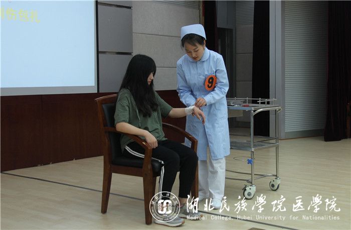 经过初赛、复赛的筛选,10名选手脱颖而出,进行最后的角逐。比赛分为三个环节,第一环节为知识竞答和单项操作,3号选手熊仁慧结合自身观察情况,对抽筋的病因及发病机理进行了详细生动的解说,9号选手李虹雨在前臂创伤包扎操作中,对患者温柔细心的问候、仔细的包扎,博得了阵阵掌声。第二环节为双人徒手心肺复苏术的演示,选手们急促的语速带动了全场紧张的气氛,从对病人进行急救直至病人苏醒,牵动了在场每一观众的心,急救表演使人身临其境。最后,在情景短剧环节中,李虹雨再次以沉着大方的表演获得观众和评委的认可,并最终夺得桂冠。