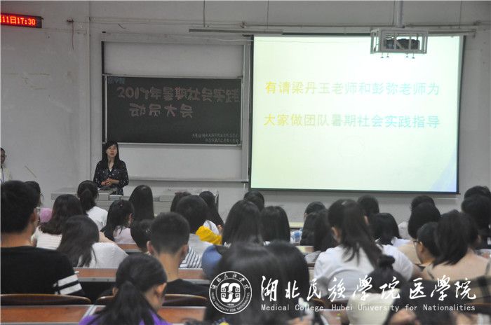 活动伊始,主持人宣读大学生开展暑期社会实践的意义。她表示,开展暑期社会实践对增强大学生对国情和社会的理解等方面具有重要的意义。往届优秀团队代表斯琴同学与同学们分享经验,她指出,在实践之前,组长必须分好工;实践期间,必须按时按量完成工作;同时,还可以利用网络之便扩大自己实践的影响力,实践后认真写好总结。接着彭弥老师致辞并宣布我院暑期社会实践正式开始。彭弥老师表示,开展暑期社会实践的目的在于让大学生在实践中受教育、长才干、做贡献,与国家共奋进,与时代同发展。大会第二环节,梁丹玉老师为优秀团队做指导。她从活动主题的确定、活动地点的选取、活动申报书的撰写以及如何进行暑期社会实践四个方面展开讲解。梁丹玉老师指出,要避免主题范围过大,无从下手;避免主体不清;避免范围过小;避免材料不齐等。她特别强调,选取的主题必须要有价值、有意义,必须保证其新颖性和独创性。此外,梁老师还为大家介绍了如何设计问卷调查,即以问题简明扼要,不涉及专业词汇为原则,包括前言、正文、附录三部分。接着,第三环节,由社工部介绍个人暑期社会实践封面、登记表、日志的格式等相关内容。