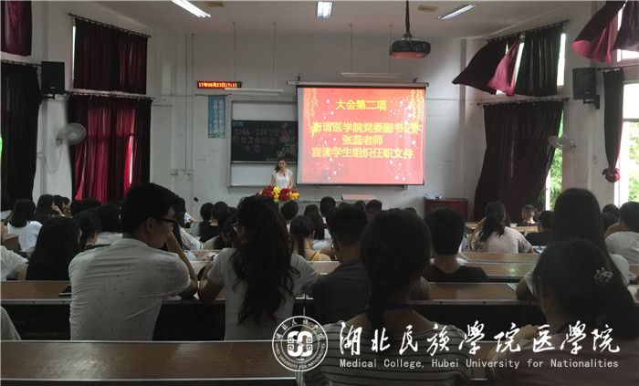 大会第一项,全体起立奏唱国歌。大会第二项,张蕊老师宣读学生组织任职文件,她宣读了我院各个组织及社团的新任干部。接着,大会第三项,我院学生组织新干部代表张雯琛发言,她讲到自己很荣幸能够作为学生干部代表站在台上,同时更是感谢学生科老师的信任,她从自己在组织的成长经历讲起,并承诺在接下来的一年里会更加热爱组织,永葆一颗责任心。大会第四项,我院党委书记刘红书记为本次大会作指导,他向同学们主要谈到三点看法:第一,学生干部要提高认识,端正思想意识,在完成自己的组织工作的同时,学生干部要注重自己的学习成绩。第二,学生干部要"公开、公平、公正",一视同仁对待同学,秉持着为同学们服务的精神,完成自己的工作。第三,要发挥团队精神。最后,刘书记对学生干部们提出殷切希望,期待同学们的优异表现。