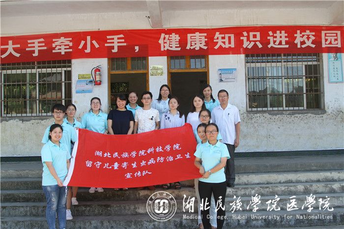 本网讯(记者 汪枫丽 张欢 朱丹/文 何艳霞/摄)为促进留守儿童的身心健康全面发展,6月20日-7月8日我院15级暑期社会实践团队《留守儿童寄生虫病防治卫生宣传队》以“留守儿童是否具有良好的卫生习惯及寄生虫病防治意识”为中心开展。本次活动由我院从事寄生虫教学及科研工作的何艳霞博士指导,分别在恩施州不同的三所小学进行,队长娜仁格日勒带领15级临床15班的8名成员参与本次活动。