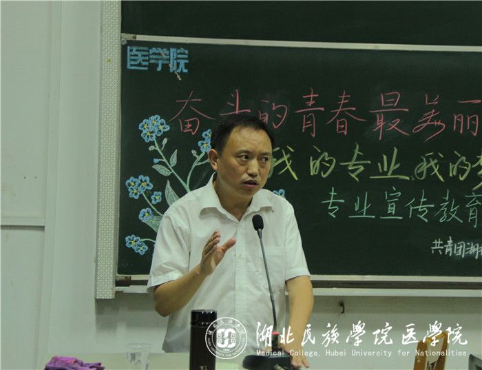 本网讯(记者 杨珂/文 熊慧雯 杨漫丽/摄)9月13日,由我院学生科主办的“我的专业,我的梦想”专业宣传教育活动在医学院举行,副院长罗洪斌、郜红利、邹莉,及专业教师向辉华、杨付明、刘哨兵应邀担任主讲人,为我院学子讲解传授相关专业知识。